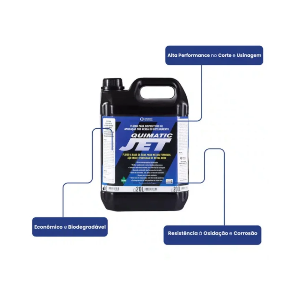 Ideal para uso em indústrias, oficinas e manutenção automotiva e industrial, o Fluido de Corte Quimatic Jet aumenta a produtividade, prolonga a vida útil das ferramentas e garante operações mais seguras, precisas e eficientes.